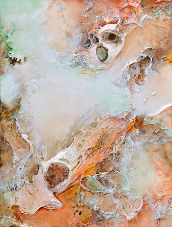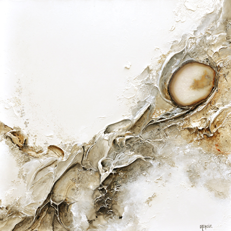 Son art a évolué:Joëlle Lalagüe nous transmettait déjà la lumière de la création de l'univers,elle y ajoute dorénavant la réalité et la beauté de notre terre en incluant ses plus beaux fruits...les cristaux.