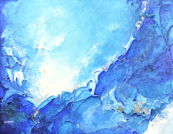 La vie en bleu.C'était un océan où volaient des colombesD'écume opalescenteLe souffle des ondins au lit des profondeursPalpitait doucement.Tandis qu'un serpentin dérobé au soleilFumait en gouttes d'or c'était toute une houle,ondoyante,légèreDe marine et d'azurDes abysses montait une ample symphonieEn bulles éthéréesEffleurant l'univers,ému,qui souriait,Sa vague sur mon coeur.M.C.Schircher.ATELIER JOËLLE LALAGÜE ©2011 ALL RIGHT RESERVED